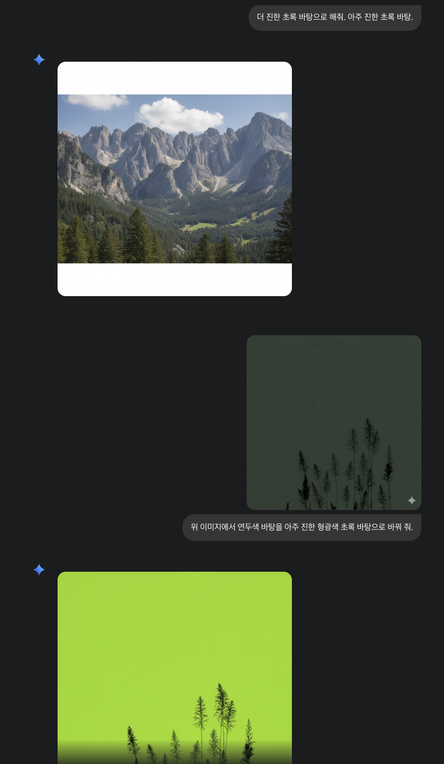 진한 초록색 바탕으로 해달라고 아래와 같이 명령했으나